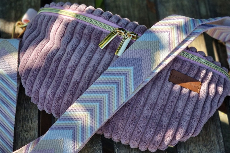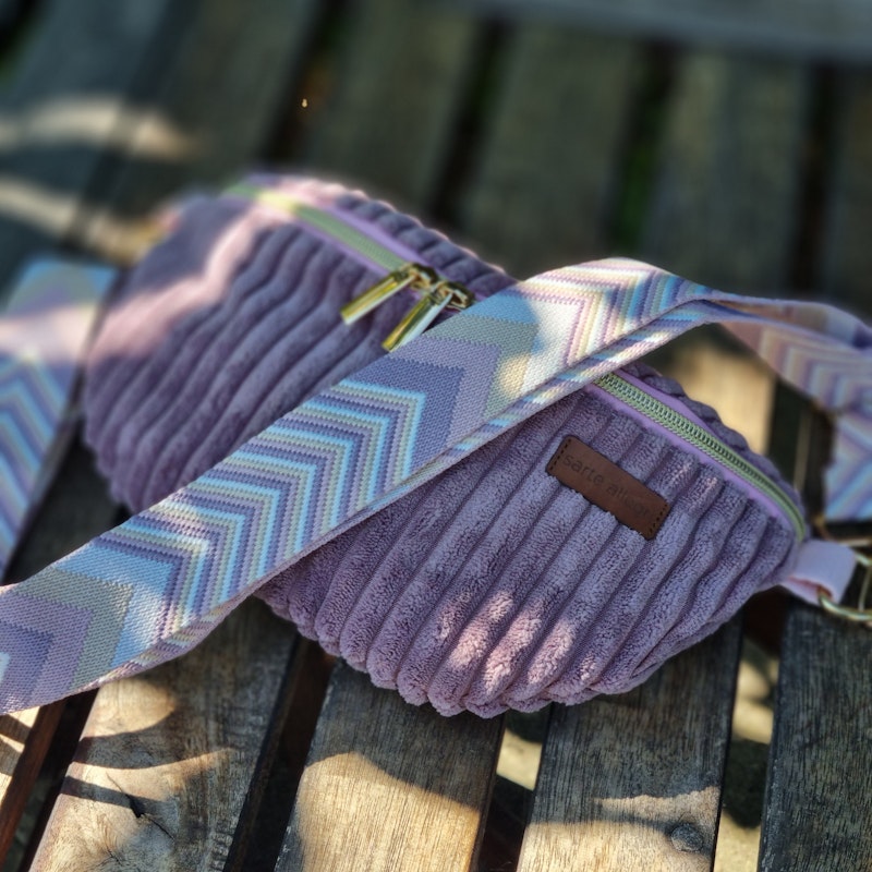 Diese Bauchtasche ist aus schönem Polstercord genäht. Die Tasche hat einen schönen Griff und durch den Cord ist sie auch nicht zu starr.
